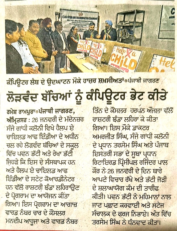Help A Child of India, through its Amritsar Child Development Project, proudly inaugurated a Computer Lab for underprivileged children, marking an important step toward digital inclusion and equal learning opportunities.